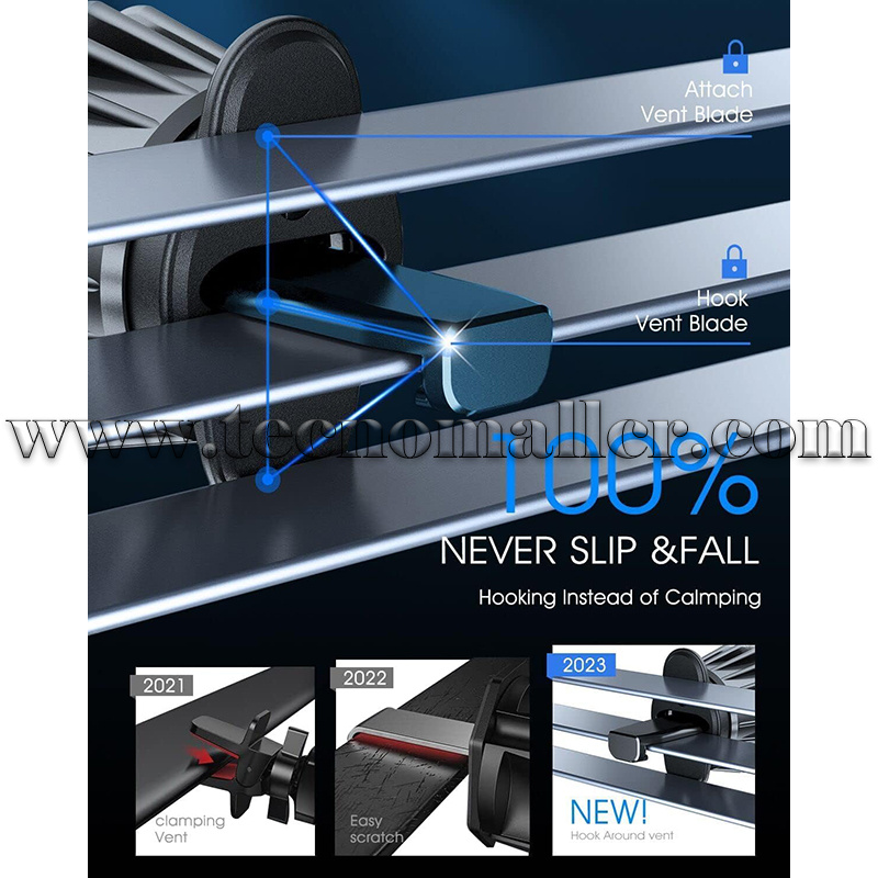 Mantén tu teléfono seguro y estable mientras conduces con este soporte de teléfono para automóvil. Cuenta con un clip de ventilación mejorado que se adapta tanto a rejillas de ventilación horizontales como verticales y se bloquea de forma segura en las cuchillas de ventilación sin dejar arañazos. No importa cuán agudas sean las curvas o cuán accidentada sea la carretera, tu teléfono permanecerá en su lugar, lo que te permitirá acceder fácilmente al GPS, música o llamadas manos libres.