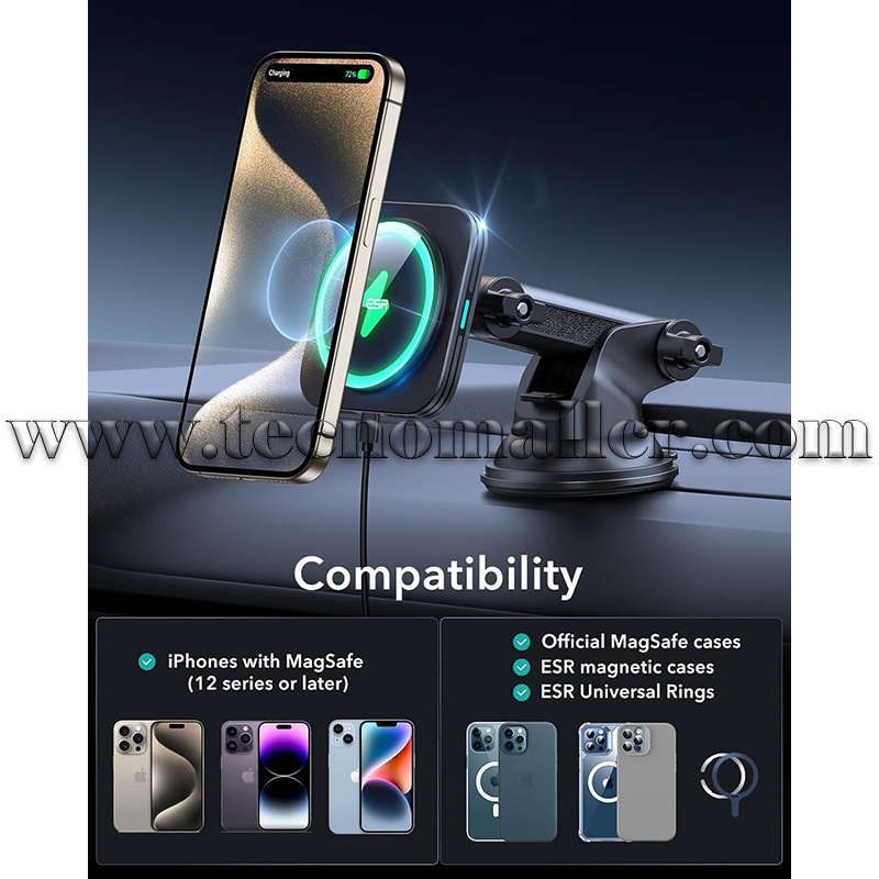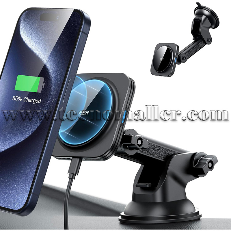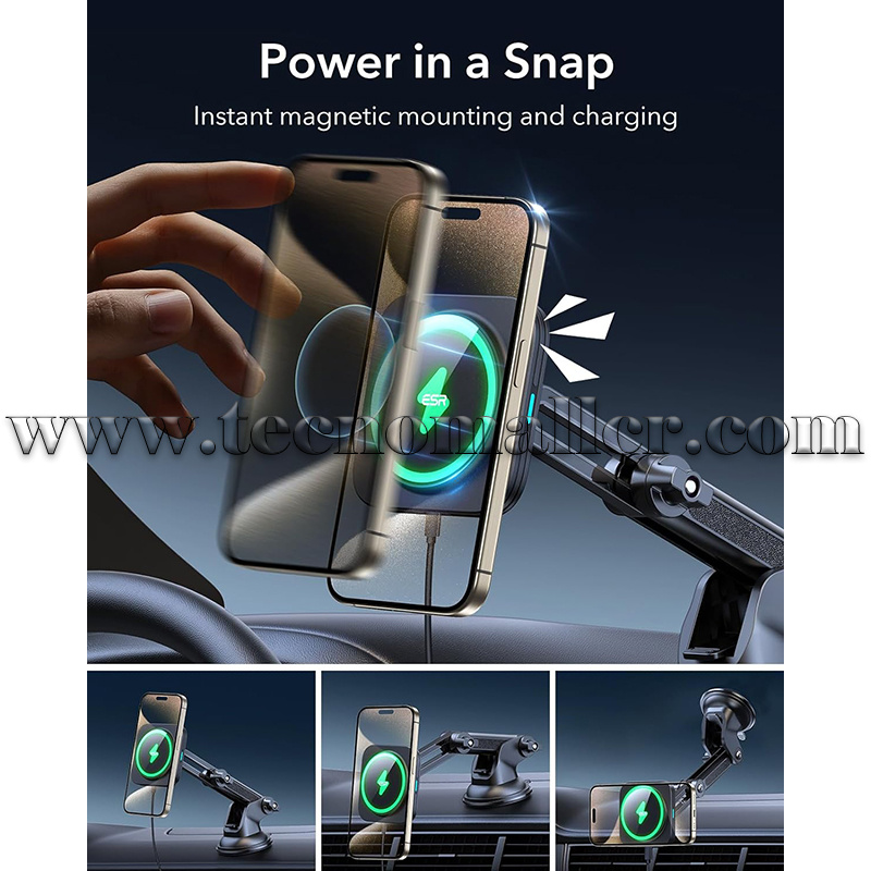 Cargador rápido inalámbrico ESR para carro compatible MagSafe para tablero/parabrisas