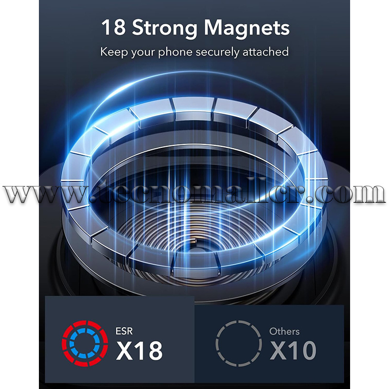 Bloqueo magnético seguro: potentes imanes con 0.05 oz de fuerza de sujeción y un anillo de silicona antideslizante que mantienen tu teléfono en su lugar de forma segura, incluso cuando conduces en carreteras con baches; combina con una funda ESR HaloLock para una sujeción magnética aún más fuerte