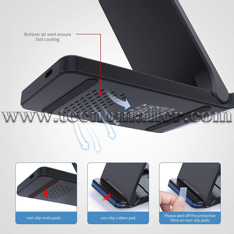 Compatibilidad universal: Modo de carga rápida compatible con iWatch series 6/5/4/3/2/1, Airpods pro/2, iPhone 12 Pro Max series/11/XS Max/XR/X/8 Plus/Samsung Galaxy S20 ultra, s 20+, S10E, S10/S9 Plus, Note 9, Note 8, S8 Plus, S7 Edge. Modo de carga estándar para teléfonos Android 5W habilitados para Qi. Los teléfonos no certificados por Qi requieren un receptor de carga inalámbrica Qi. Retira los accesorios magnéticos o metálicos de la funda del teléfono o del teléfono antes de cargar.