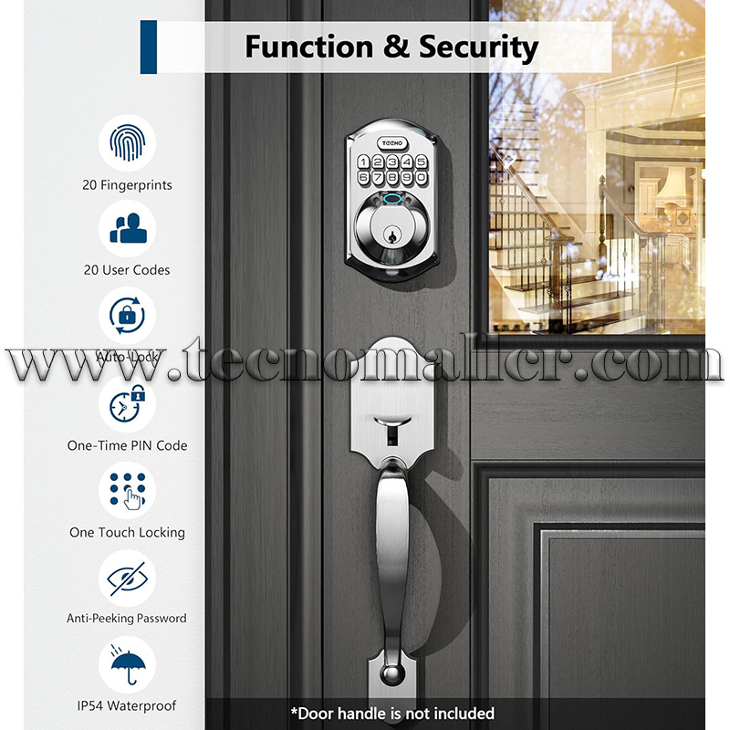 Desbloqueo seguro de huellas dactilares: desbloquee su puerta en solo 1 segundo con nuestra tecnología de identificación biométrica de huellas dactilares que reconoce su huella digital en solo 0.3 segundos.