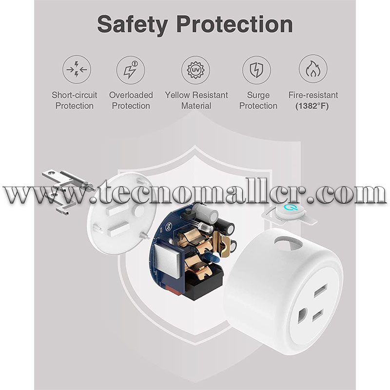 Tamaño pequeño y protección de seguridad: el tamaño de este enchufe inteligente Wi-Fi es pequeño que no bloquea otras tomas, muy fácil de usar y libera los segundos enchufes. Para mejorar la seguridad, nuestros enchufes inteligentes soportan protección contra sobretensiones, protección contra cortocircuitos, protección contra sobrecarga, protección contra sobrecorriente y carcasa resistente al fuego de grado V0 (1382 °F), viene con certificación internacional ETL y FCC.