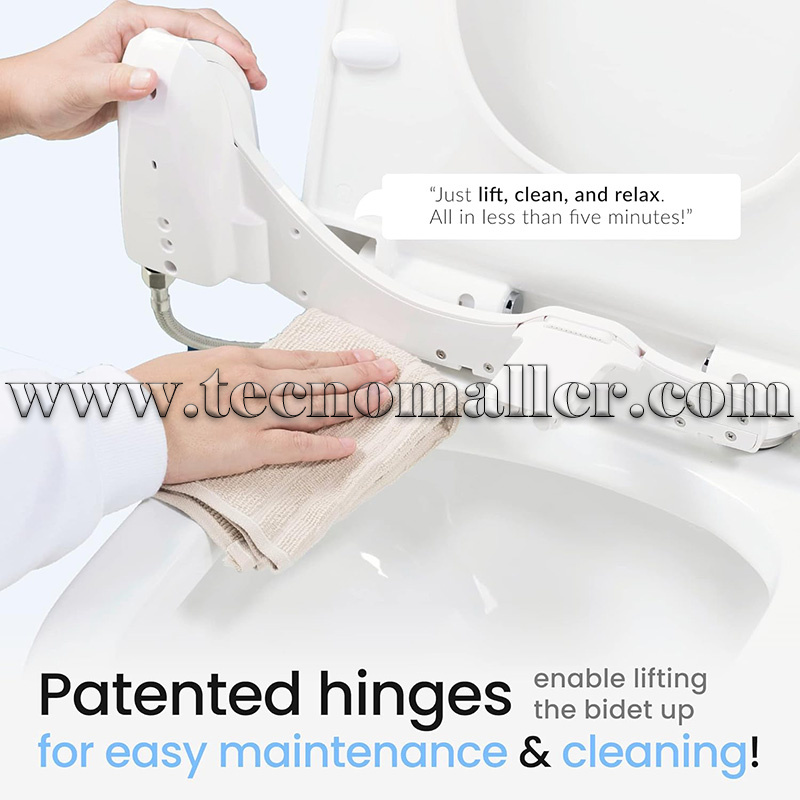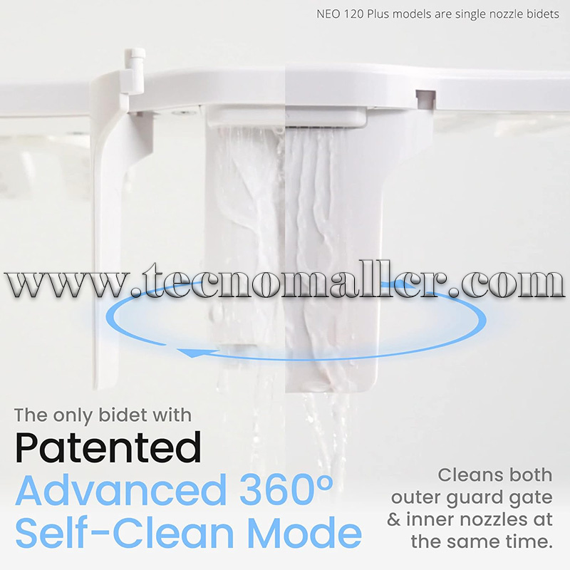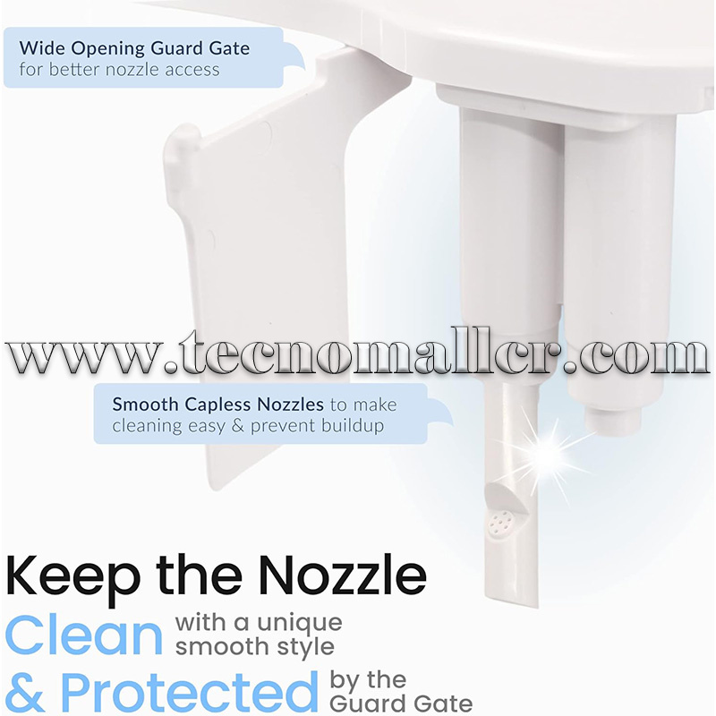 Innovación nunca antes vista: el único bidé que se voltea hacia arriba y fuera del camino para una fácil limpieza de lugares difíciles de alcanzar. Active el modo de autolimpieza de 360° para la limpieza panorámica tanto de la puerta de protección como de las boquillas.