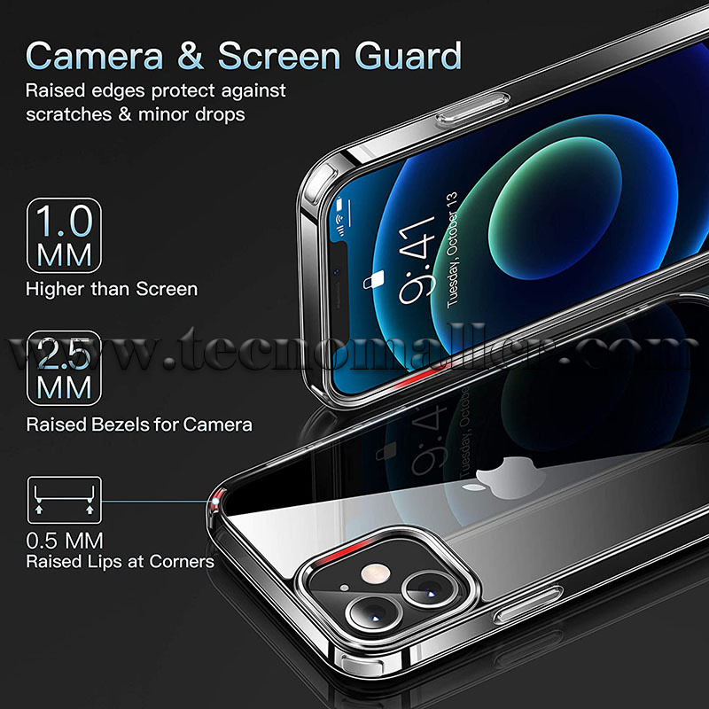 Protección elevada de la cámara y la pantalla: los biseles elevados evitan que la pantalla y la cámara se caigan y se rayen. El pequeño diseño de 0.098 in de borde sobre la cámara, bisel de 0.039 in sobre la pantalla y bordes de esquina elevados de 0.039 in en la parte posterior proporciona una protección adicional y completa.