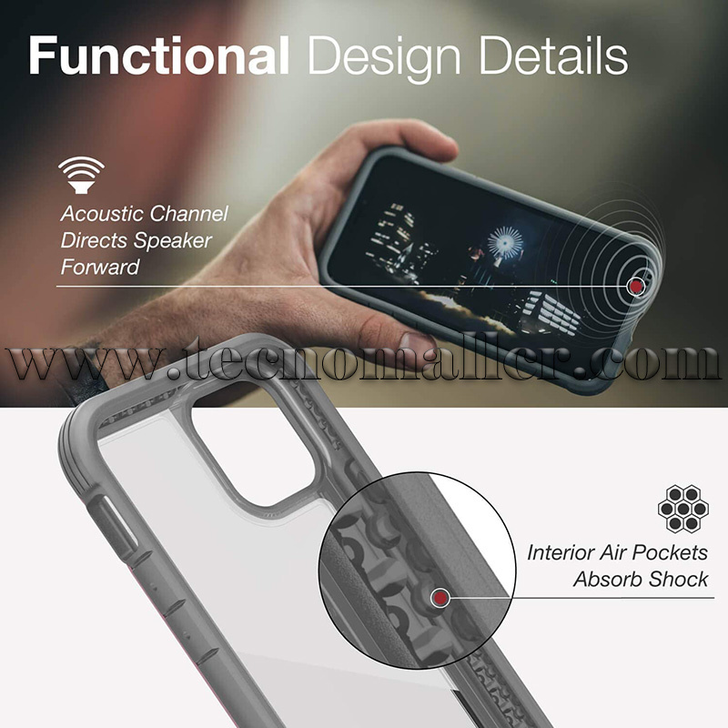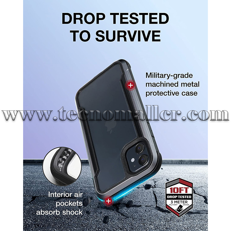 iPhone 12 estuche Raptic Shield antigolpes hasta 3 metros transparente con marco de aluminio
