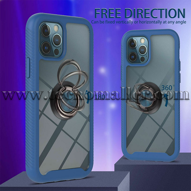 iPhone 13 Pro Max estuche 3 en 1 transparente a prueba de golpes con anillo