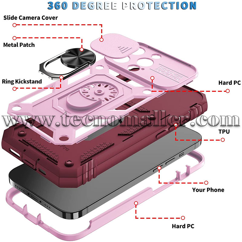 Cámara y pantalla: la cámara de la funda adopta un exquisito diseño de cubierta deslizante, que protege perfectamente la cámara oculta de daños y desgaste. Al mismo tiempo, la periferia de la pantalla de la funda sobresale más alto que la pantalla, lo que es perfecto para evitar cualquier caída, daño y arañazos.