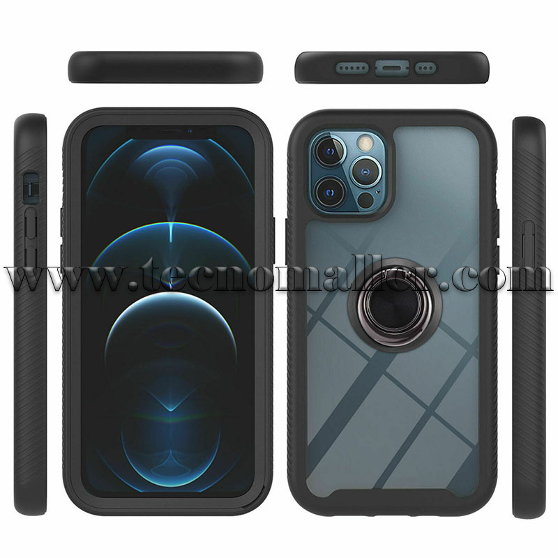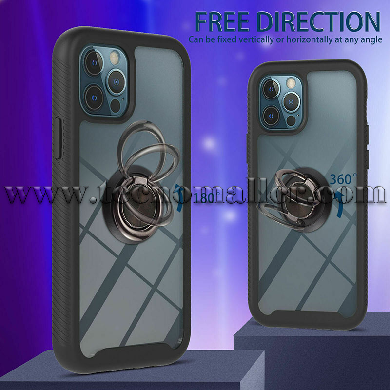 iPhone 13 Pro estuche 3 en 1 transparente a prueba de golpes con anillo