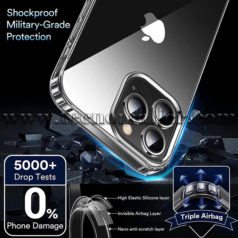 Protección de grado militar a prueba de golpes: cumple con el estándar [MIL-STD-810G]. Equipado con 12 bolsas de aire anticolisión en cuatro esquinas, se amortiguan eficazmente cuando se cae o se golpea. Su rendimiento anticolisión es 3 veces más alto que otras fundas de teléfono. La placa trasera está hecha con policarbonato duro y el parachoques está hecho con TPU flexible, que evita arañazos y protege bien el teléfono.