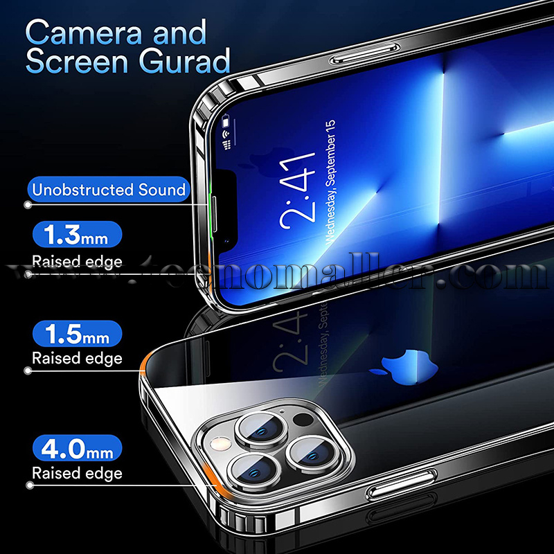 Protección de pantalla y cámara: los bordes elevados evitan que la pantalla y la cámara se dañen y rayen cuando se cae o se golpea. Los bordes elevados de la pantalla de 0.051 in y los bordes elevados de la cámara de 0.157 in proporcionan una protección adicional y completa para tu teléfono.