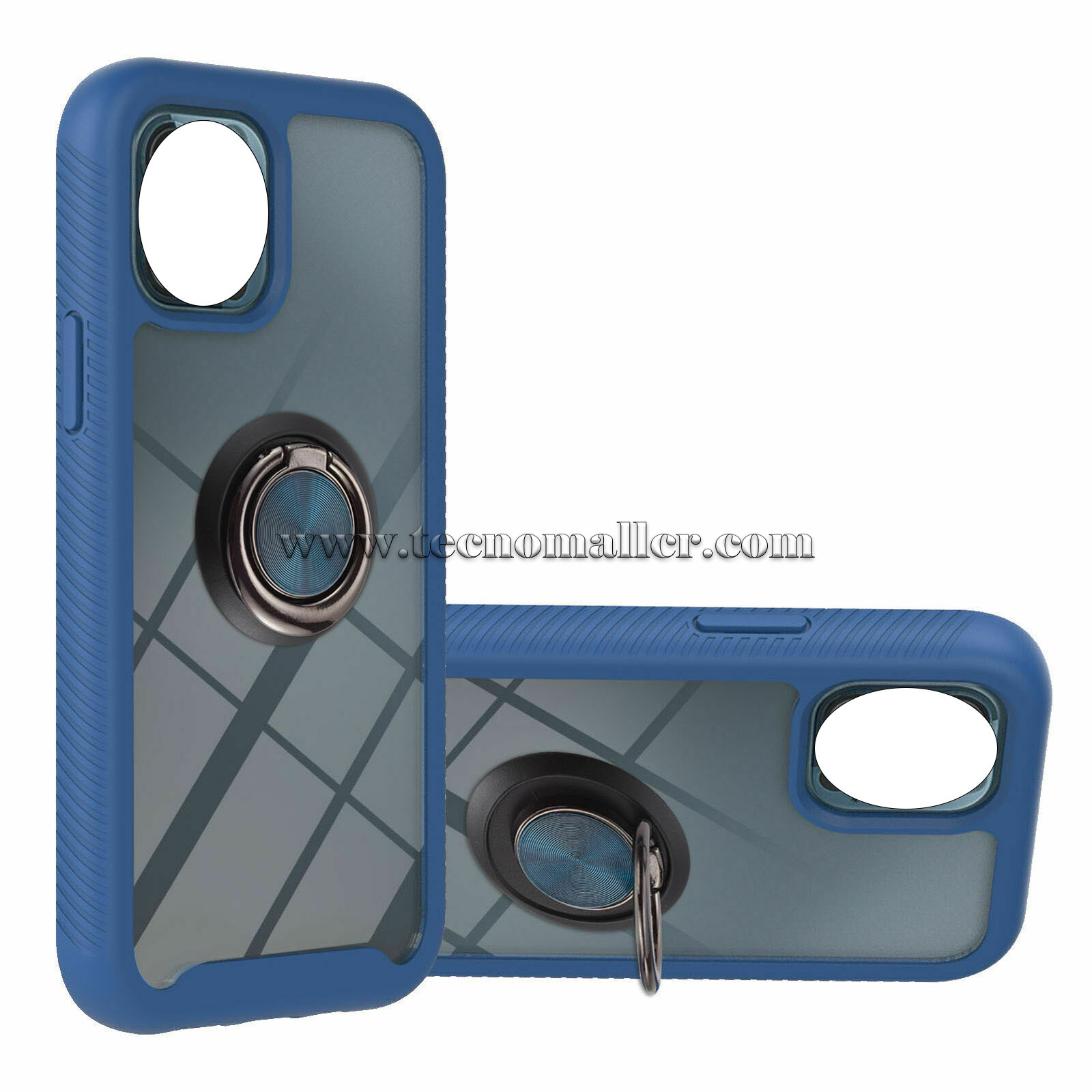 iPhone 13/14/15 estuche 3 en 1 transparente antigolpes con anillo