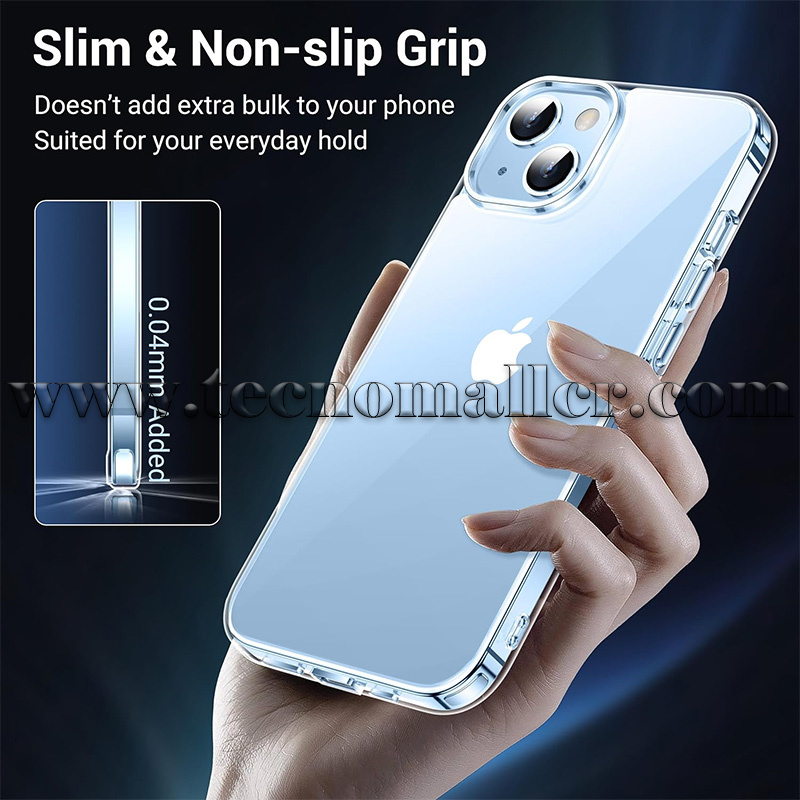 Diseño delgado y agarre cómodo: la funda transparente para iPhone 15/14 está diseñada para ser delgada y ligera, por lo que es fácil de llevar en tu bolsillo y usar con una mano. El marco de TPU procesado proporciona una sensación delicada al tacto y un agarre antideslizante.