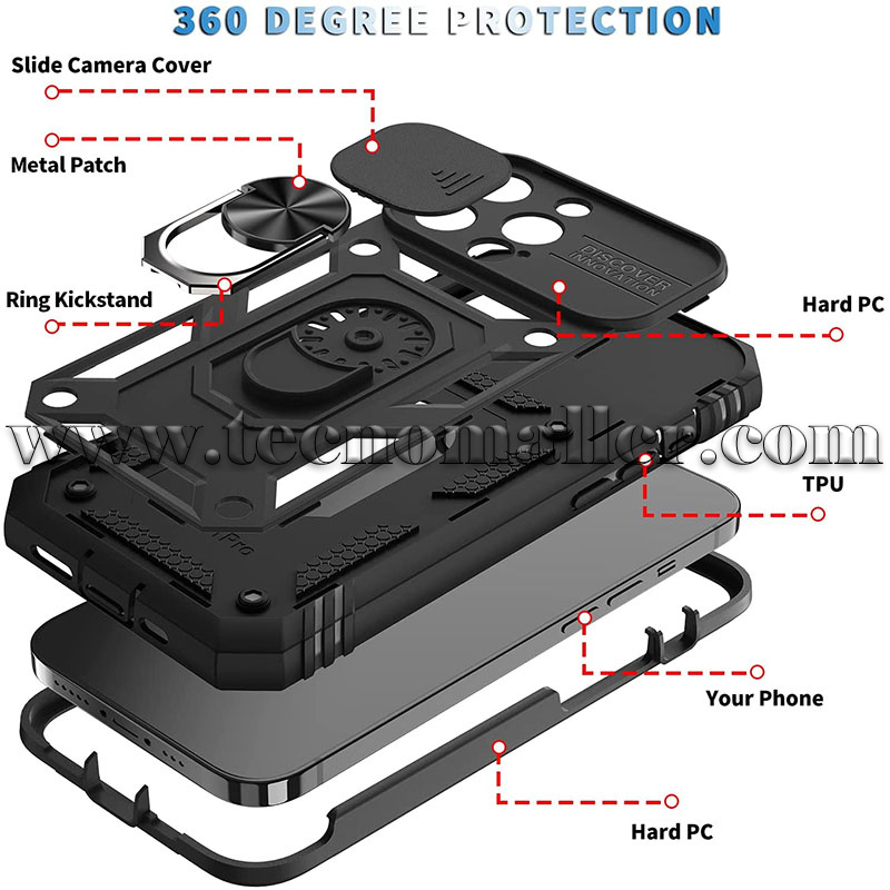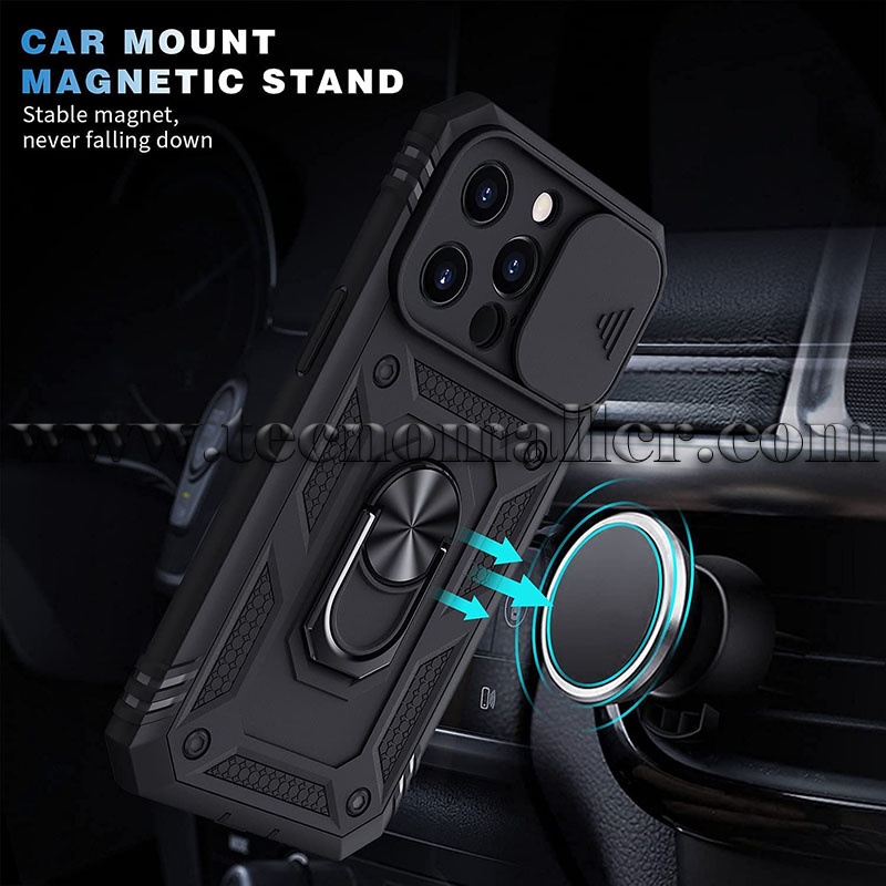 iPhone 14/15 Pro estuche antigolpes 3 en 1 marco, sopore y anillo