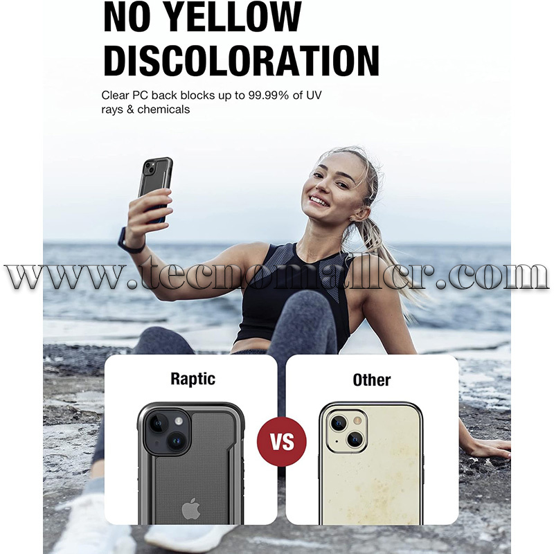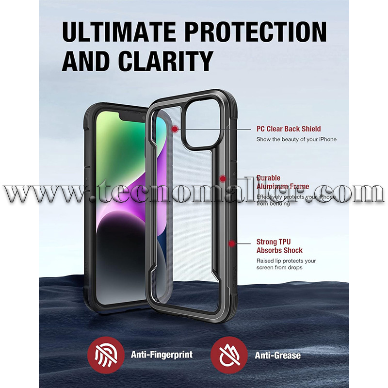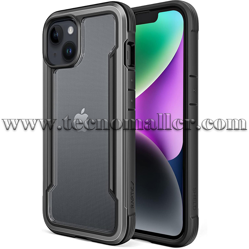 iPhone 13/14/15 estuche Raptic Shield antigolpes hasta 3 metros transparente con marco de aluminio