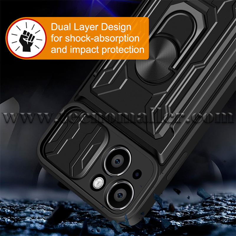 Cubierta deslizante para cámara: la cubierta protectora de lente se puede deslizar libremente para proteger la cámara de arañazos. Protección de doble capa: el material es de TPU combinado con el PC integrado, protege tu teléfono de caídas, arañazos. Protección de grado militar en todas partes.