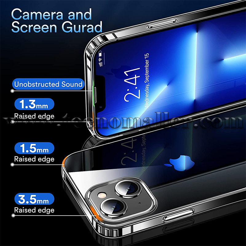Protección de pantalla y cámara: los bordes elevados evitan que la pantalla y la cámara se dañen y rayen cuando se cae o se golpea. Los bordes elevados de la pantalla de 0.051 in y los bordes elevados de la cámara de 0.157 in proporcionan una protección adicional y completa para tu teléfono.