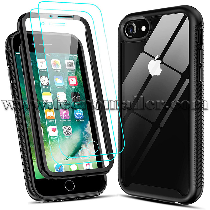 iPhone SE 2020 estuche 2 en 1 transparente antigolpes con 2 vidrios temperados