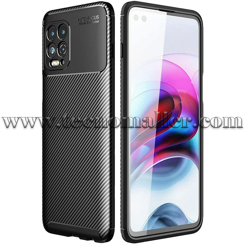 Motorola G100 funda de fibra de carbono flexible, anti huellas y golpes