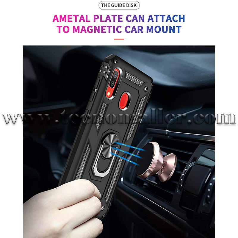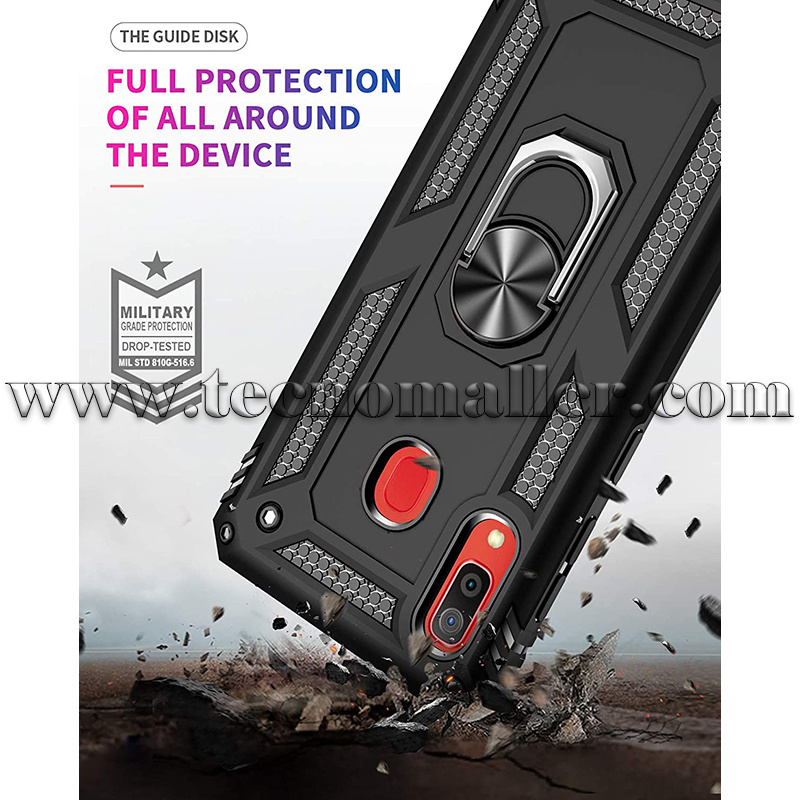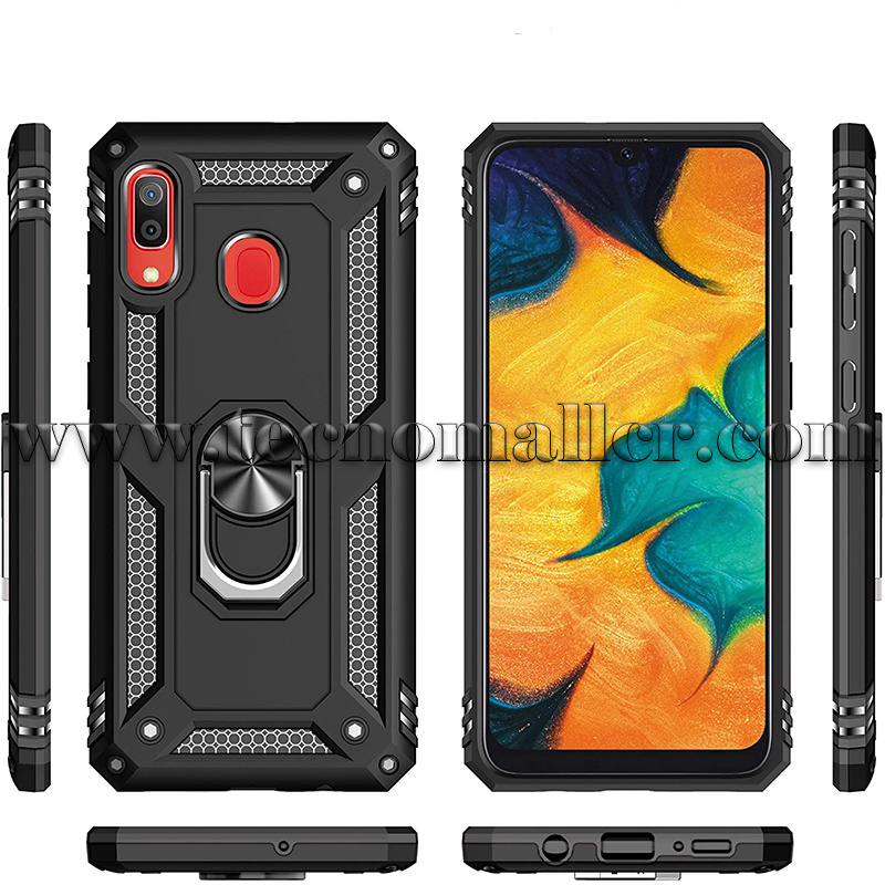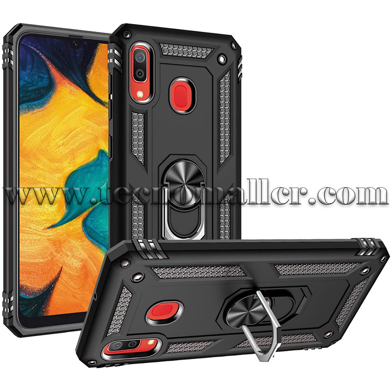 Samsung Galaxy A20 / A30 estuche anti-golpes con anillo metalico giratorio 2 en 1.
