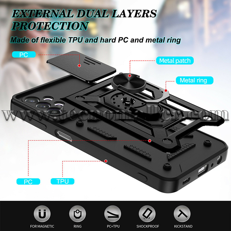 Samsung Galaxy A33 funda hibrida con anillo y proteccion para camara