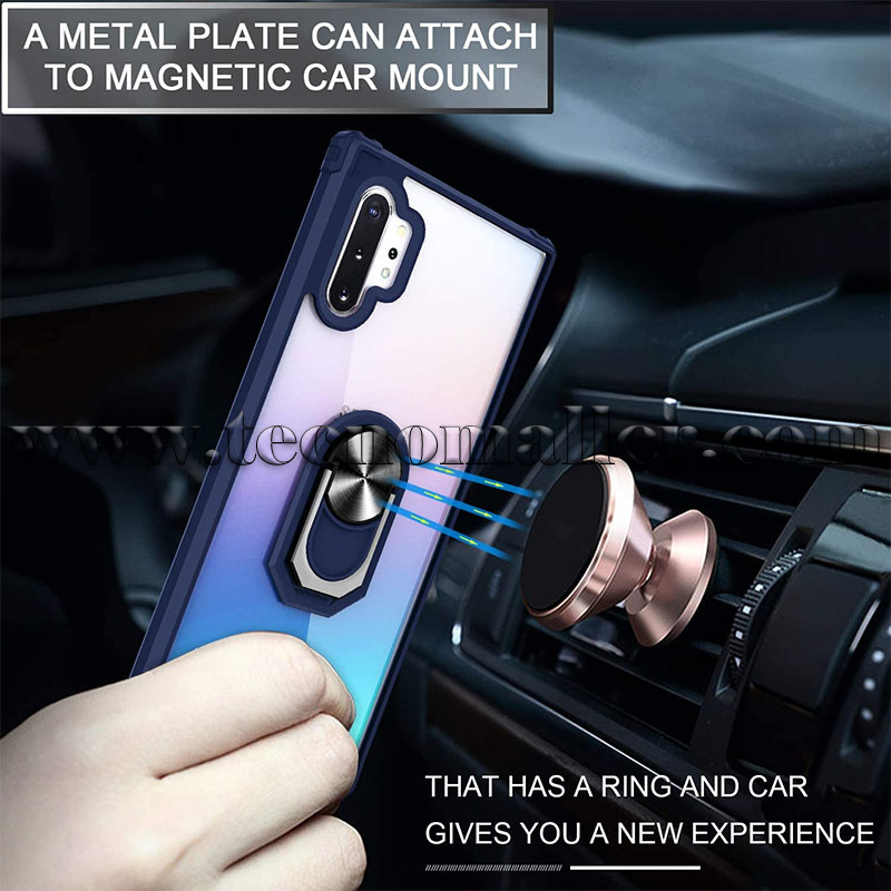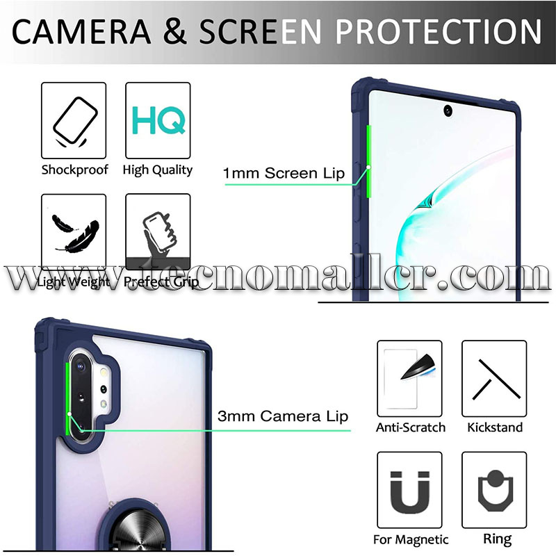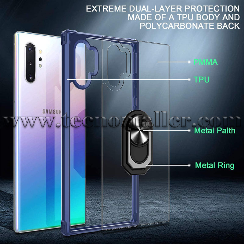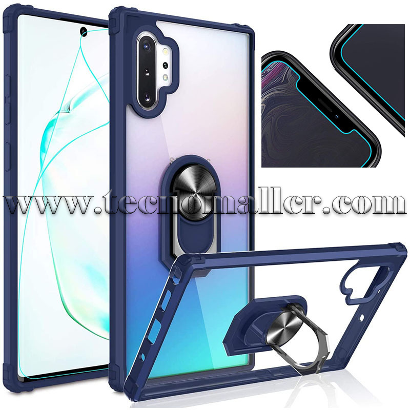 Samsung Galaxy Note 10+ estuche transparente con anillo metalico + Protector de pantalla Pet