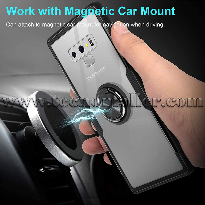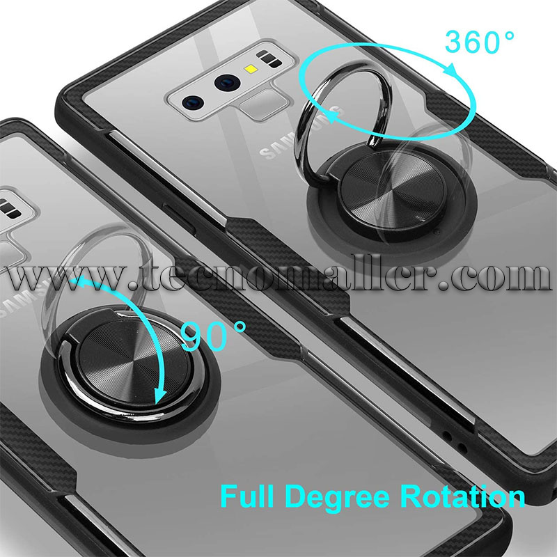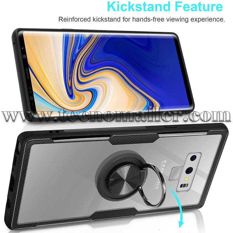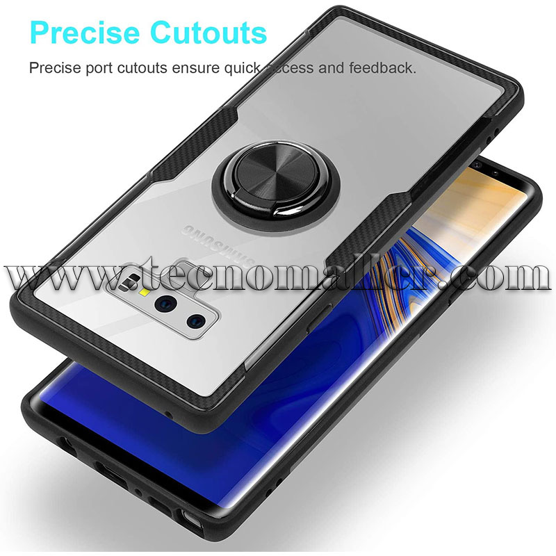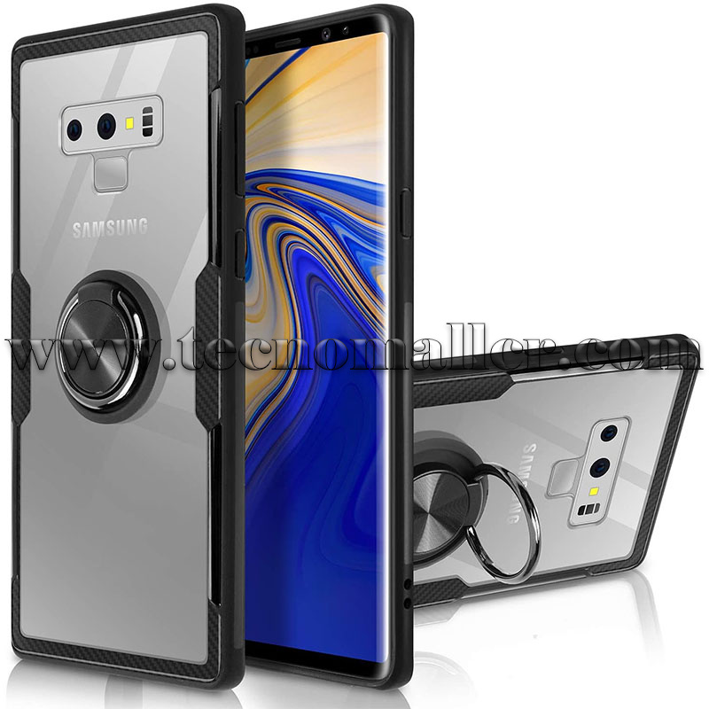 Samsung Note 9 estuche policarbonato transparente y fibra de carbono con anillo magnetico
