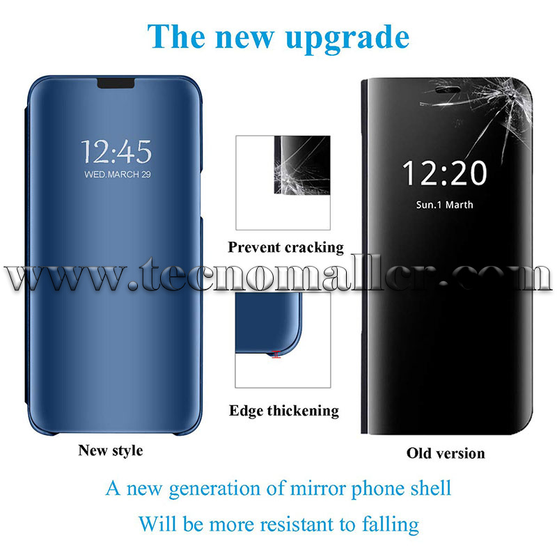 Funda de espejo de lujo delgada con tapa que puede ser brillante chapado en espejo de maquillaje. La funda de espejo está hecha de policarbonato duro y piel sintética suave. Diseño único que permite un fácil acceso a todos los botones, controles y puertos sin tener que quitar el teléfono.