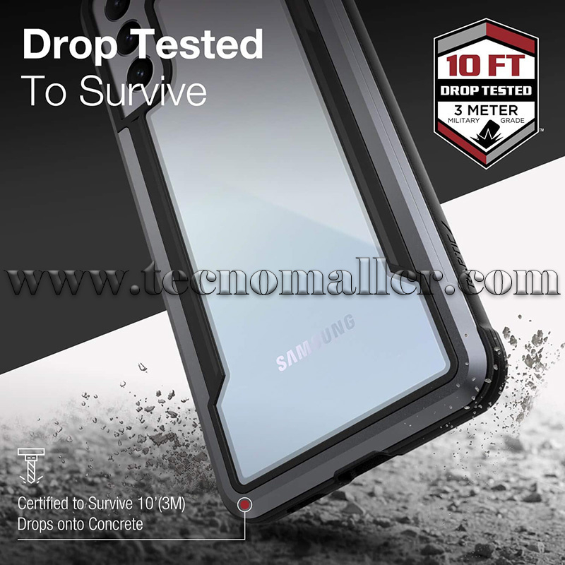 Samsung Galaxy S21+ estuche Raptic Shield Pro antigolpes hasta 3 metros transparente con marco de aluminio