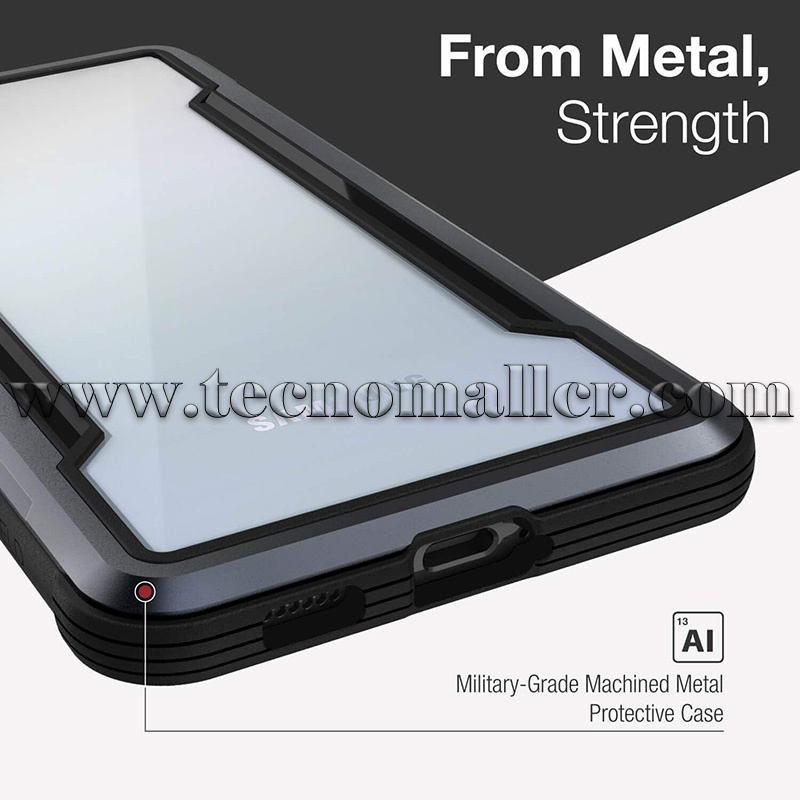 Marco de aluminio mecanizado: carcasa de policarbonato duro, envuelta con aluminio anodizado y un forro interior de goma suave con patrón de burbujas, absorbe y desvía los golpes cuando tu teléfono experimenta impacto, lo que hace de esta una funda resistente.