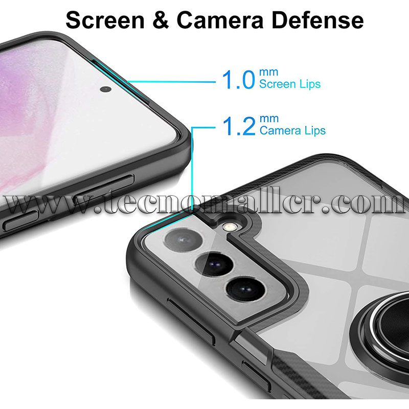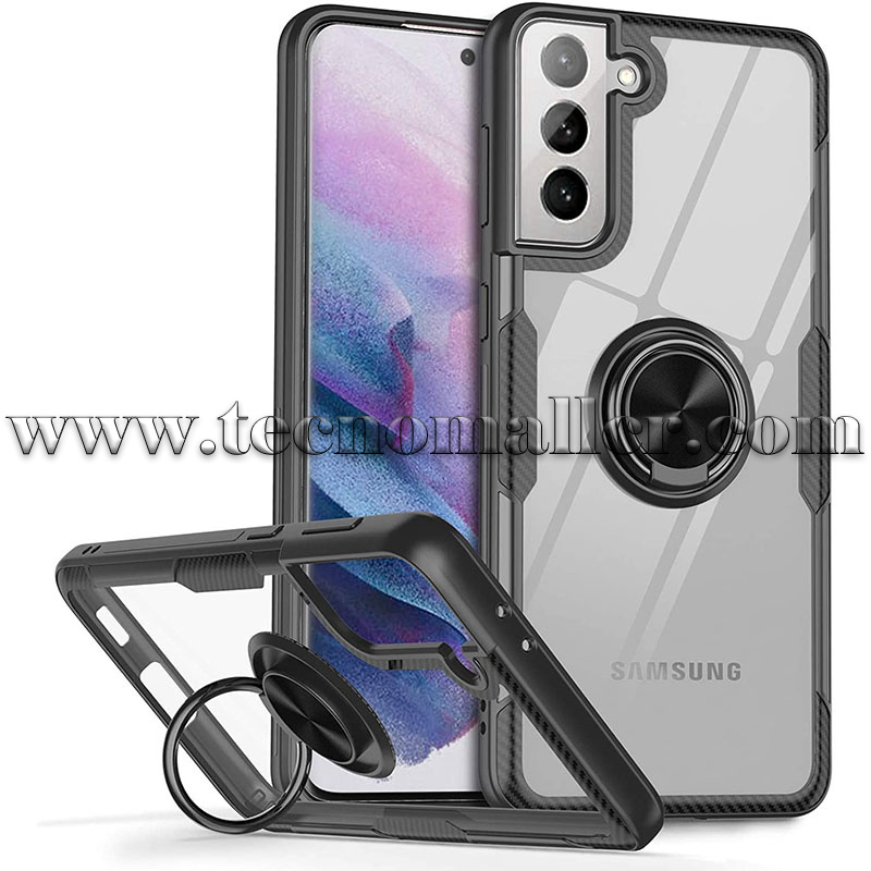 Samsung Galaxy S21 FE estuche policarbonato transparente y fibra de carbono con anillo magnetico