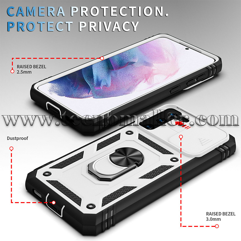 Cámara y pantalla: la cámara de la funda adopta un exquisito diseño de cubierta deslizante, que protege perfectamente la cámara oculta de daños y desgaste. Al mismo tiempo, la periferia de la pantalla de la funda sobresale más alto que la pantalla, lo que es perfecto para evitar cualquier caída, daño y arañazos.