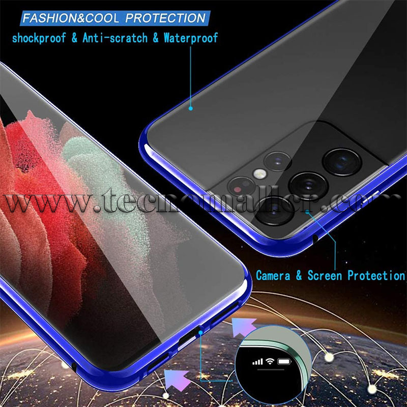 Samsung Galaxy S21 Ultra Estuche magnetico azul de doble cara