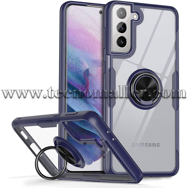 Samsung S21 estuche policarbonato transparente y fibra de carbono con anillo magnetico