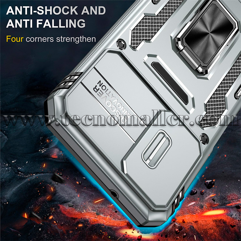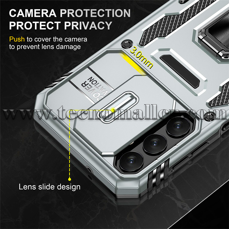 Diseño deslizante de lente de cámara: delicada cubierta deslizante de cámara, más alta que la lente elevada, proporcionando protección de lente premium. Los biseles elevados alrededor de la pantalla ayudan a proteger contra arañazos.