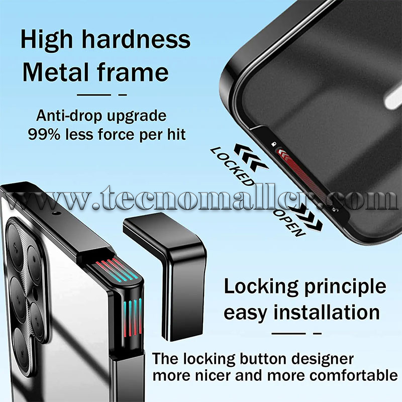 Anti-caída a gran altitud, alta transparencia y sin amarillamiento, antihuellas dactilares integral, lentes con todo incluido, sensación de metal desnudo, ligero y delgado, súper succión, ajuste estable y sin caídas. El diseño de la cerradura es más hermoso y conveniente.