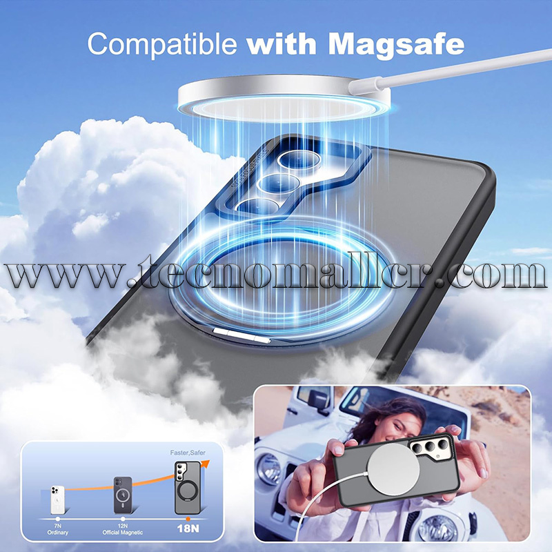 Imanes mágicos para Magsafe: la funda es compatible con todos los accesorios Magsafe y cargadores inalámbricos certificados por Qi de terceros. Con una estructura de anillo magnético de 50 piezas, se puede bloquear a cargadores inalámbricos, garantiza una carga más rápida y estable, mejora tu experiencia de carga inalámbrica
