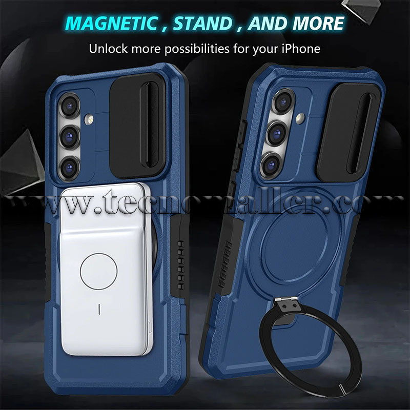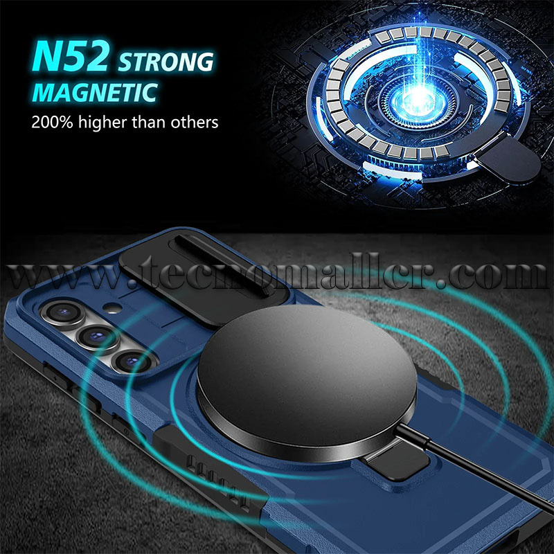 Samsung Galaxy S24+/S25+ estuche antigolpes con soporte compatible Magsafe y protector de cámara