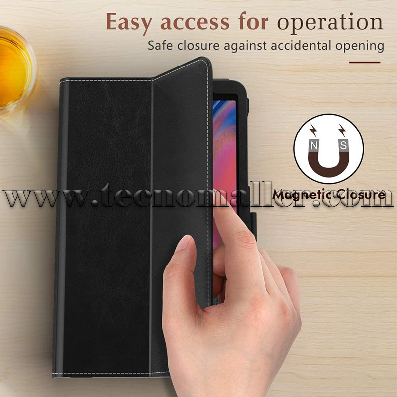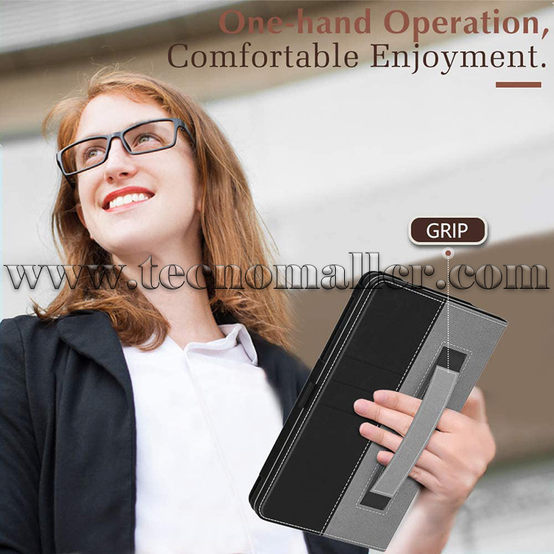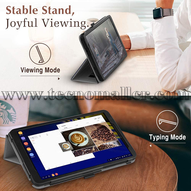 Protección fuerte: hecho de exterior de cuero PU y forro de microfibra suave, evita que tu tableta sufra golpes, caídas y rasguños.