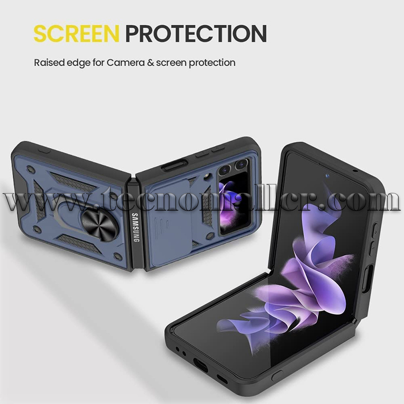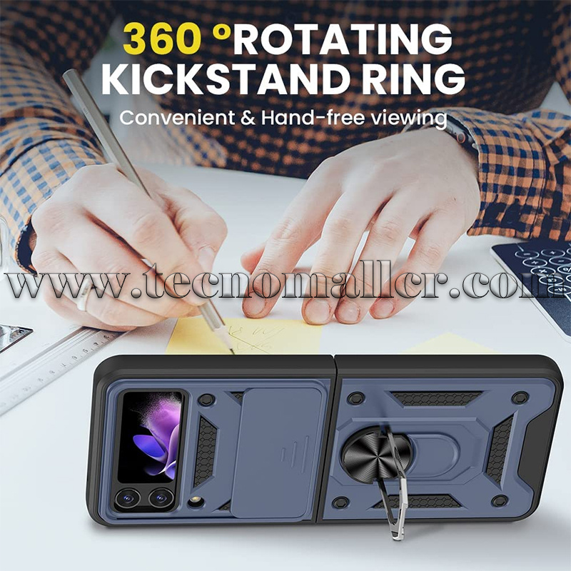 Samsung Galaxy Z Flip 3 con función atril proteccion cámara deslizante con soporte de anillo giratorio magnetico