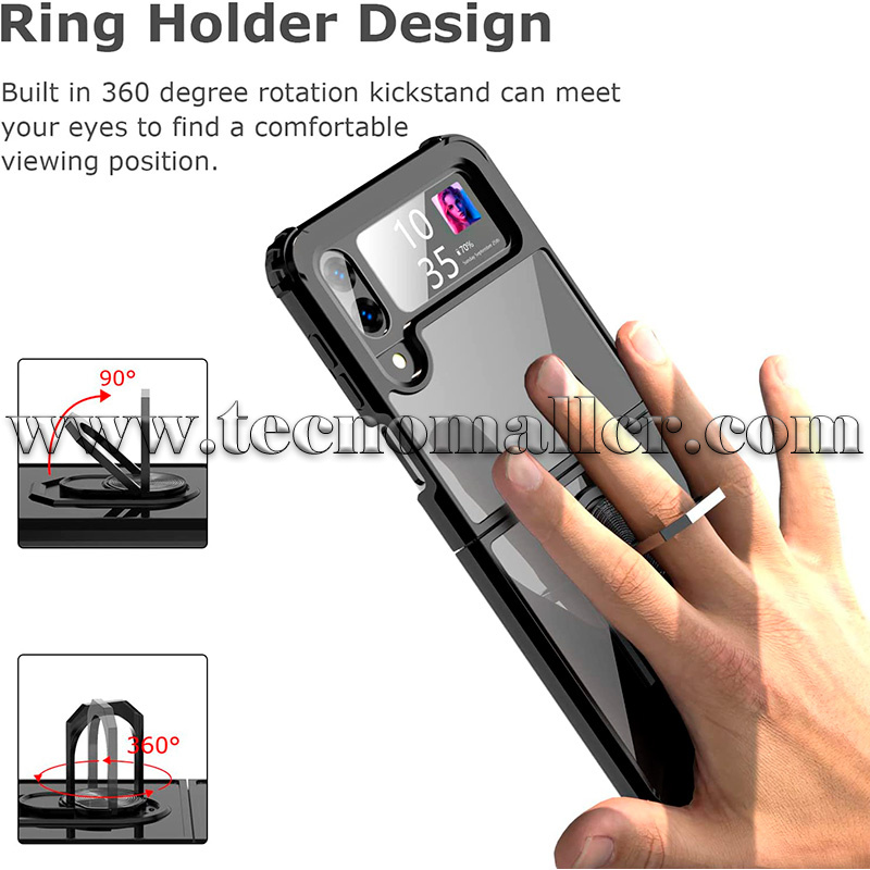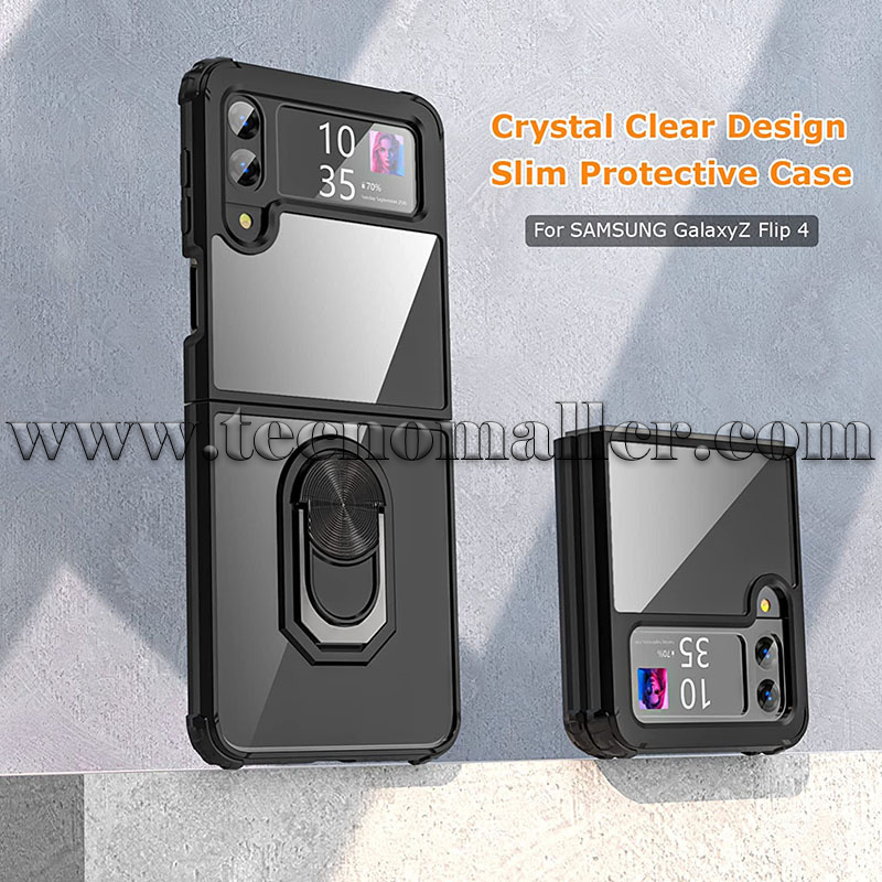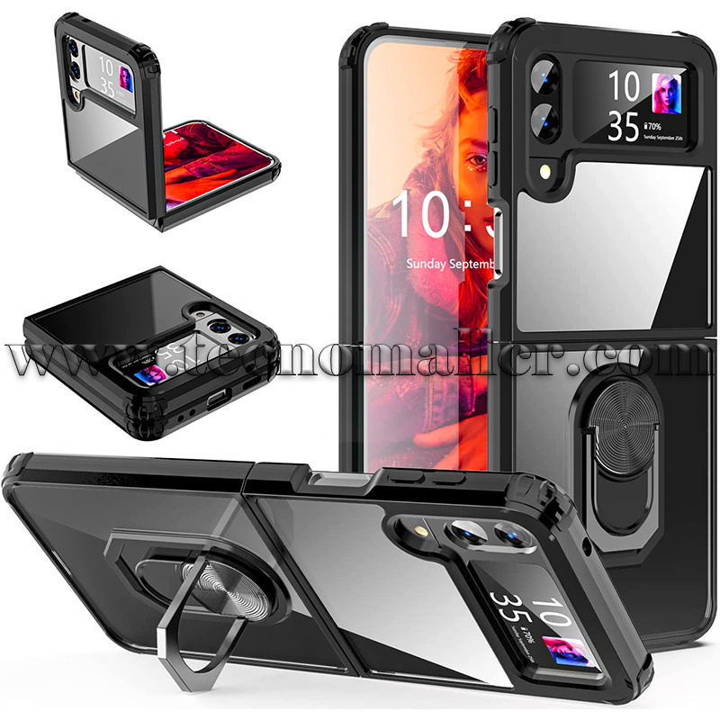 Samsung Galaxy Z Flip 4 estuche protector con anillo giratorio transparente con negro