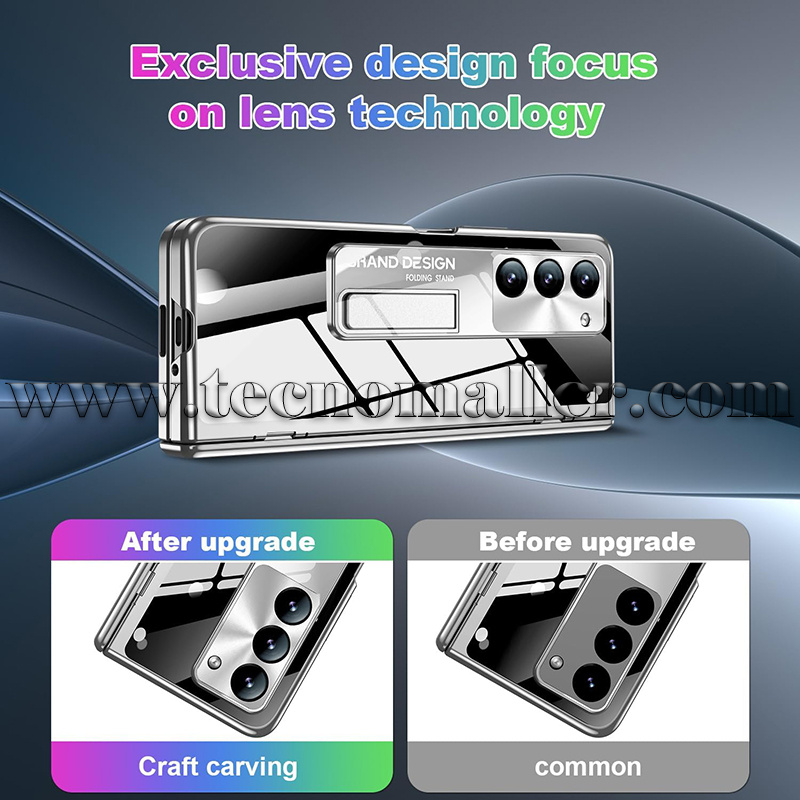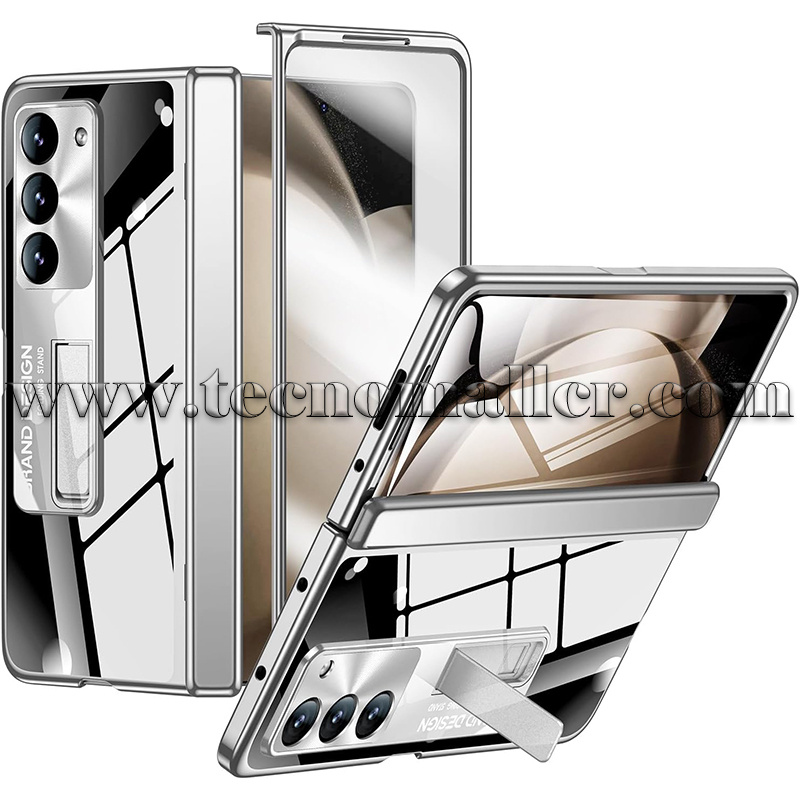 Samsung Galaxy Z Fold 5 estuche protector con soporte galvanizado de lujo transparente con negro