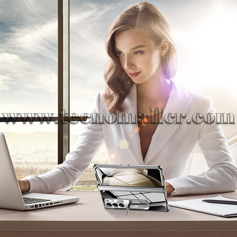 Diseño de bisagra ultrafina y soporte de resorte: (1). Funda para Samsung Galaxy Fold 5 con diseño mejorado de protección de bisagra. La bisagra es más delgada, el diseño de apertura y cierre de resorte, se ajusta, evita la entrada de polvo, y el diseño de bisagra delgada aumenta la comodidad de sostener. (2) La parte posterior de esta funda para Samsung Fold 5 tiene un soporte resistente para funciones de apertura y cierre fáciles y rápidas mientras mantiene el teléfono en modo horizontal con el mejor ángulo de visión.