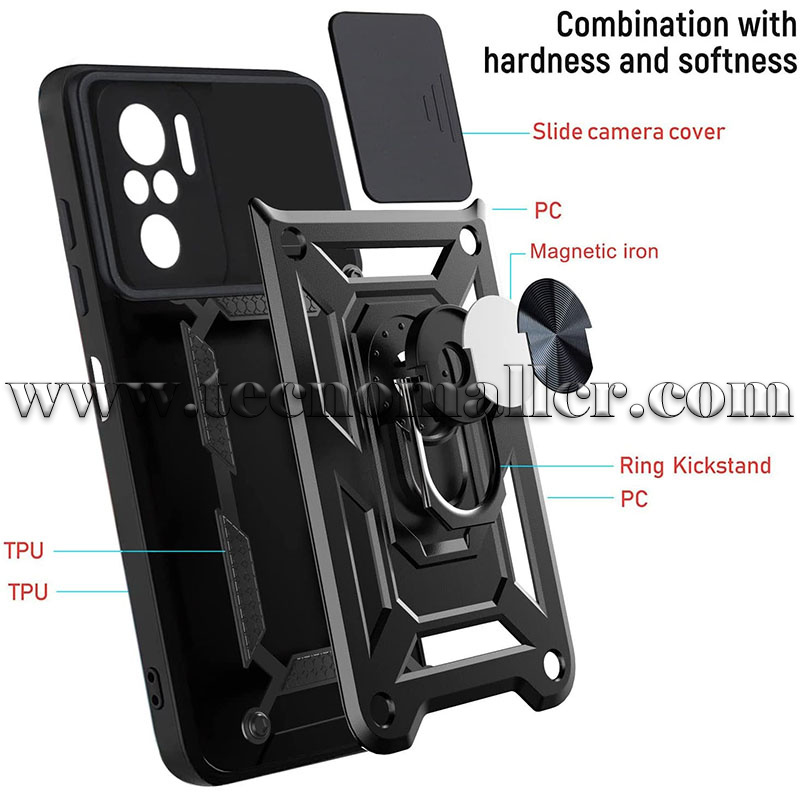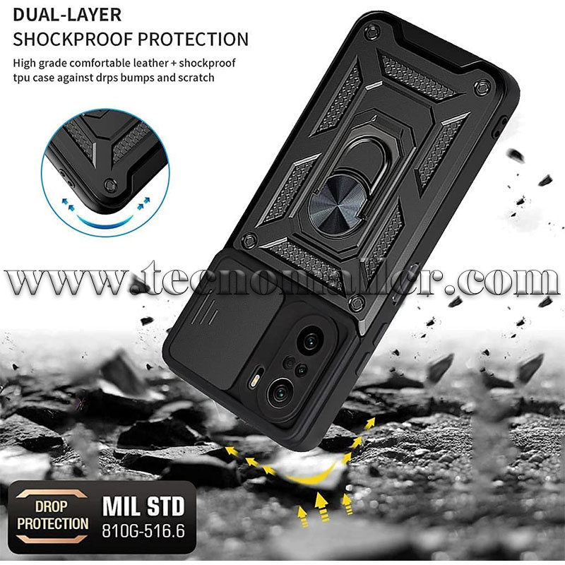 Poco F3 funda hibrida con anillo y proteccion para camara