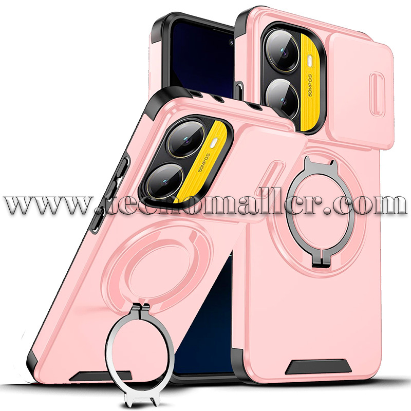 Protege tu teléfono con esta funda híbrida premium con soporte magnético giratorio de 360° y protector deslizante para la cámara. Diseñada para soportes MagSafe aunque no permite la carga inalámbrica y el uso de accesorios sin esfuerzo. Su resistente construcción híbrida de PC y TPU ofrece una excelente resistencia a los golpes, a la vez que mantiene un perfil delgado y ligero. Los recortes precisos brindan un acceso perfecto a todas las funciones del teléfono, lo que la convierte en la opción perfecta para estilo y protección.
