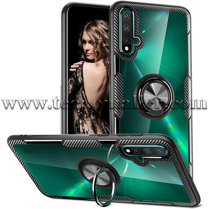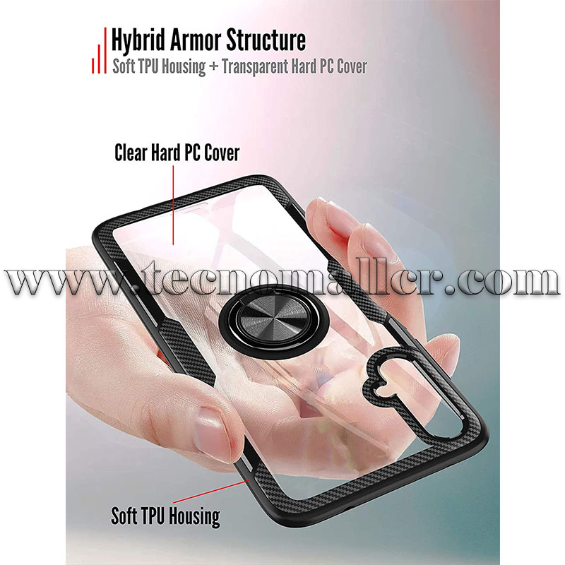 Redmi 9T estuche policarbonato transparente y fibra de carbono con anillo metalico
