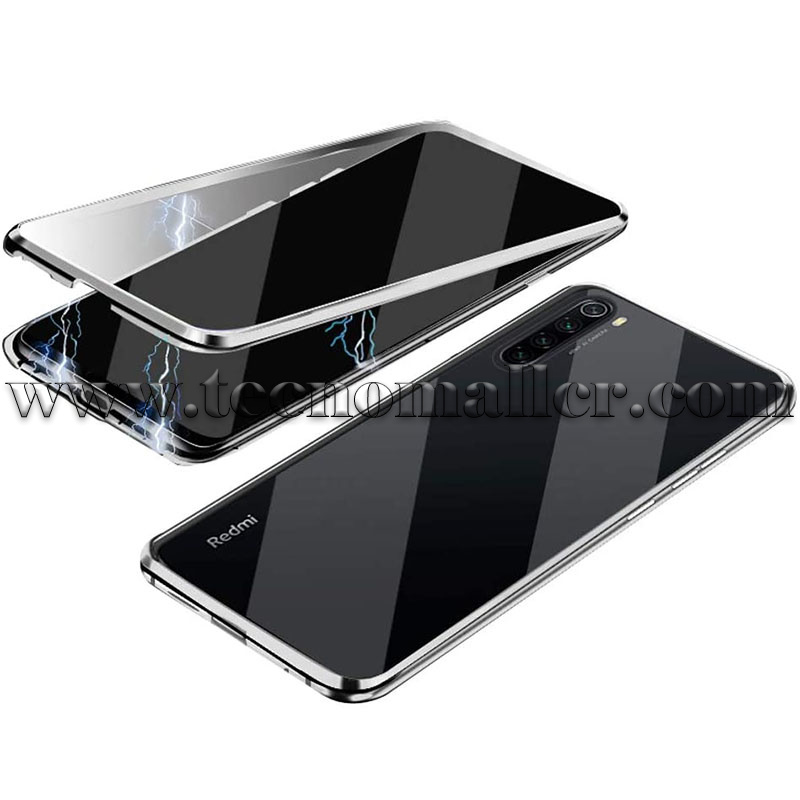 Redmi Note 8 Estuche magnetico plata de doble cara