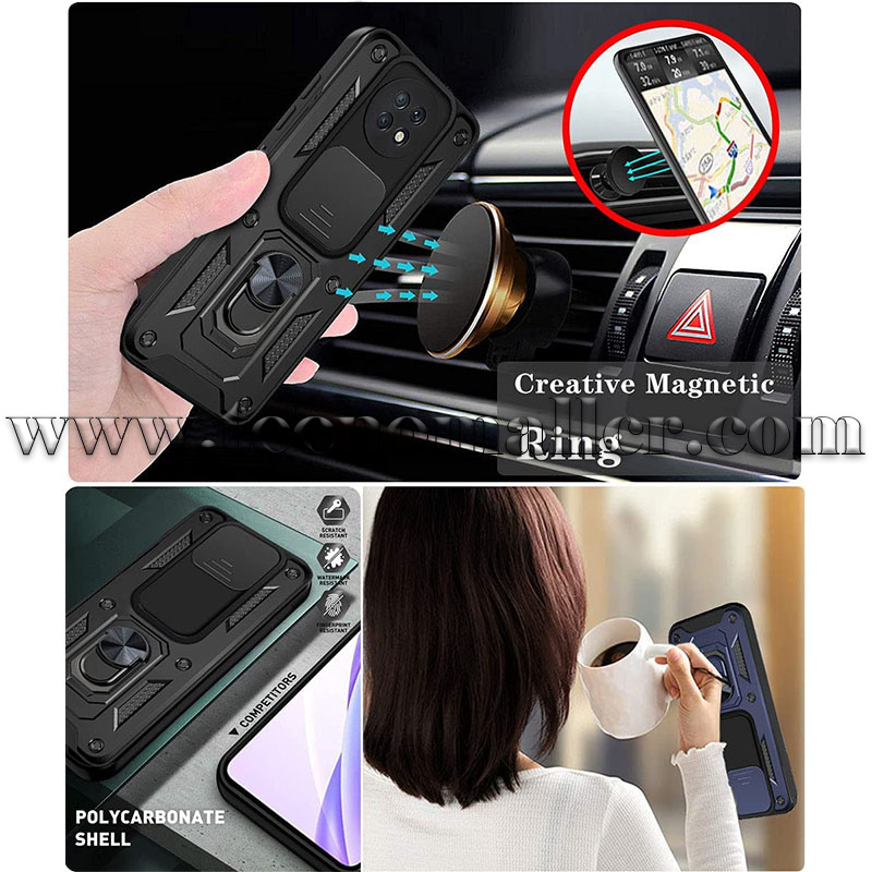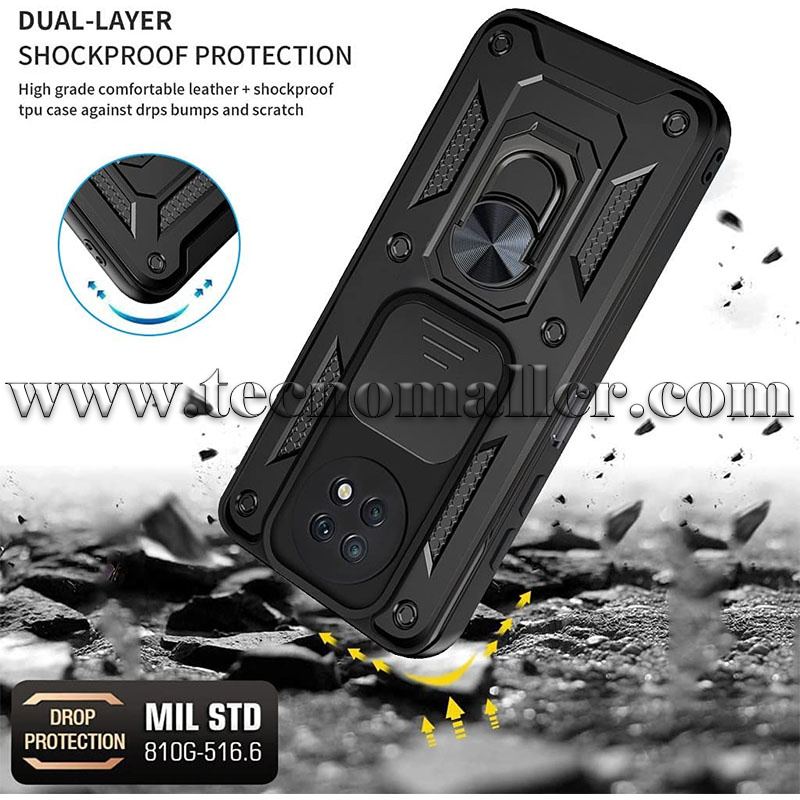 Redmi Note 9T funda hibrida con anillo y proteccion para camara