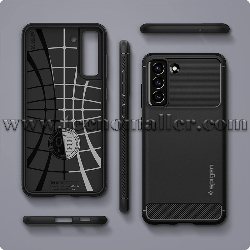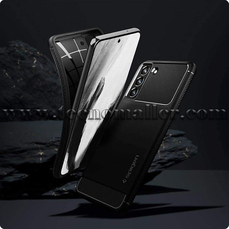 Samsung Galaxy S21 FE estuche Spigen Rugged Armor protector flexible antideslizante