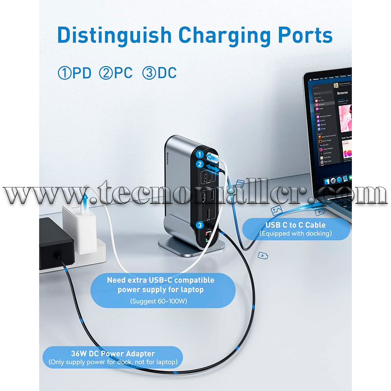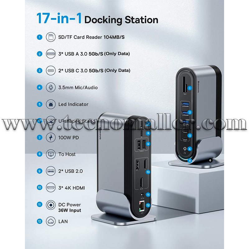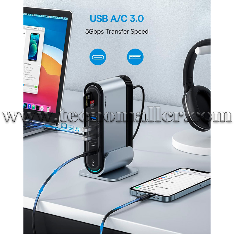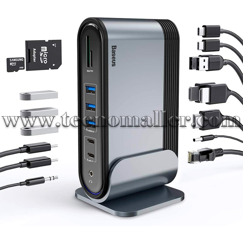 Estación de trabajo BaseUS 17 en 1 Hub USB C multifuncional para e pantallas