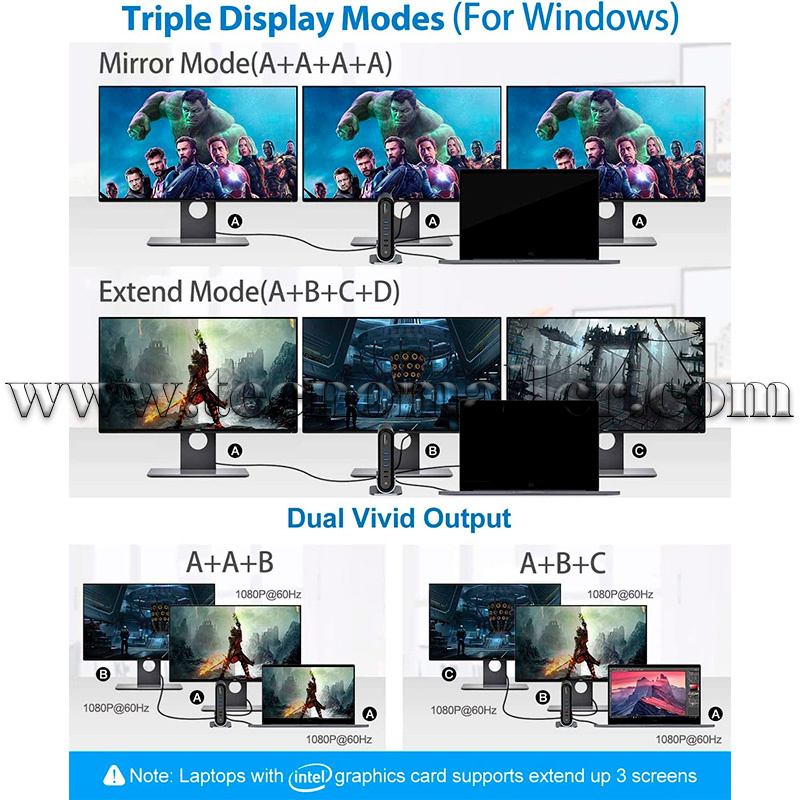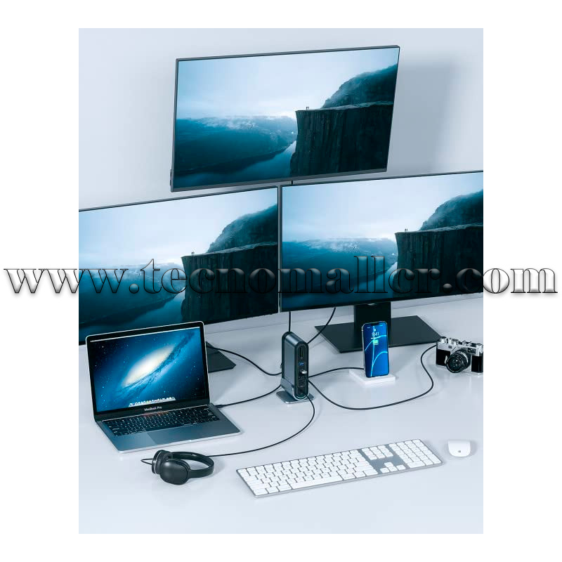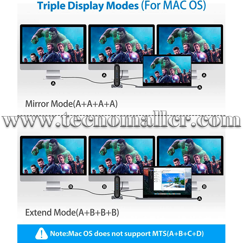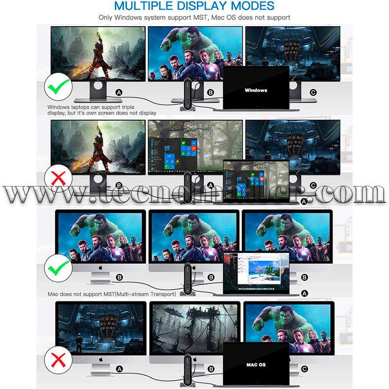 Triple extensión al máximo: aumenta la productividad al lanzar hasta 3 contenidos diferentes en pantallas; píxeles reales de hasta 4K a 30Hz cuando se utiliza un solo puerto HDMI, 1080P a 60Hz cuando se utiliza un sistema Windows de 2 o 3 pulgadas. Disfruta de una transferencia de datos eficiente y una carga rápida a través de todos los puertos de alta velocidad. Nota: MacOS no es compatible con el modo MST, los 3 periféricos de pantalla reflejarán la interfaz del escritorio.